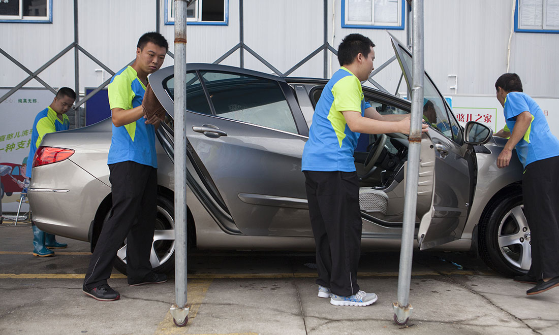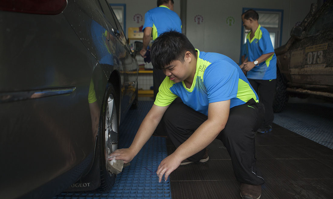 A car wash in Shenzhen, South China’s Guangdong Province not only offers a full-service shine, but also a sustainable way to employ China’s mentally challenged.