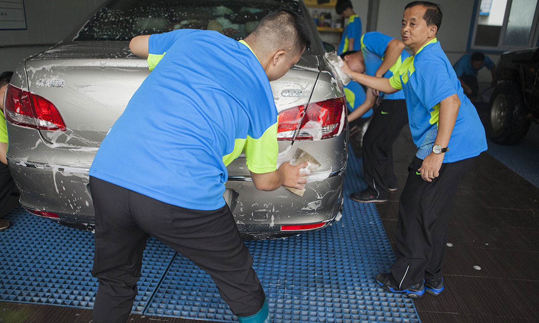Professional car washers assign the 10 different steps in the cleaning process to employees based on their strengths. For example, Chen Xingyou can only make circular motions when cleaning, so he is assigned to clean wheels. figcaption >
