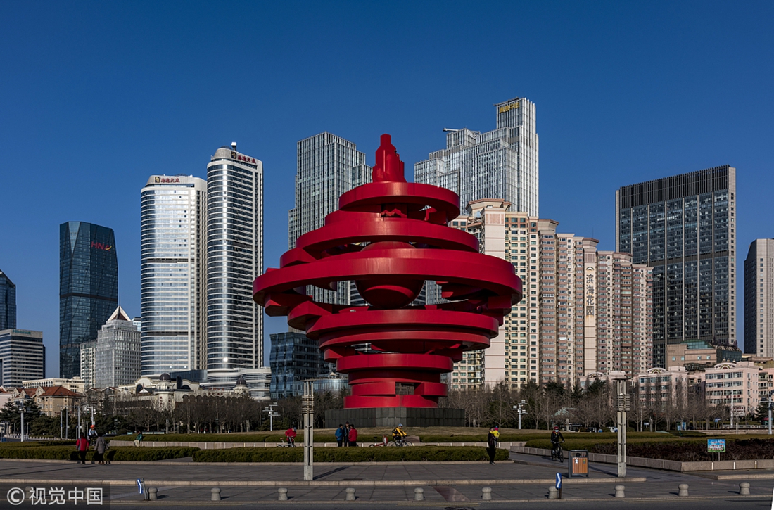 The May Wind sculpture is an iconic landmark of the May Fourth Square in Qingdao, East China's Shandong Province, on March 9, 2017. Photo: VCG figcaption >