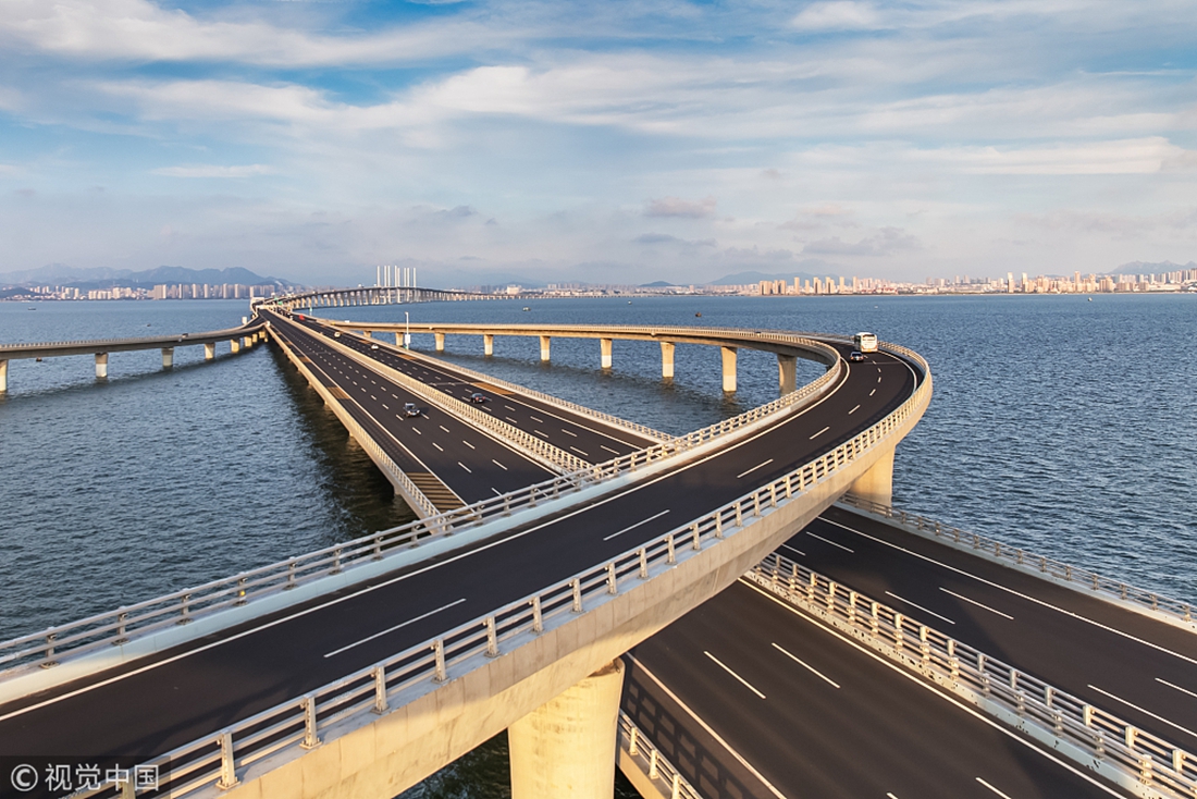 The Jiaozhou Bay Bridge stands elegantly over the water in Qingdao, East China's Shandong Province, on August 4, 2016. Photo: VCG figcaption >