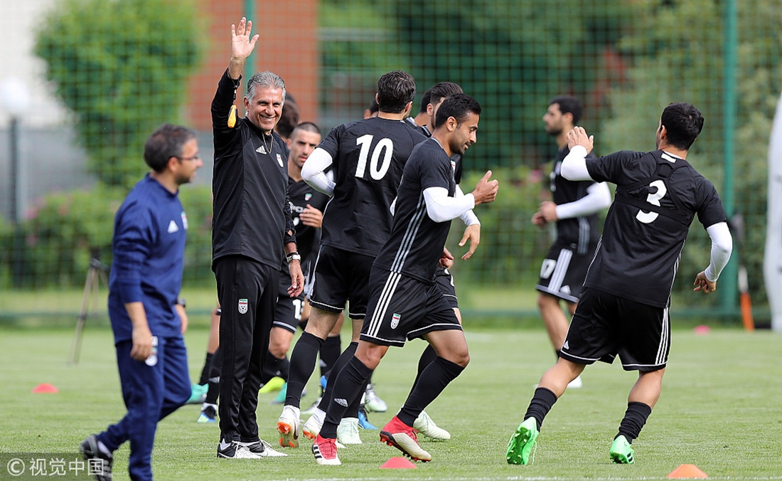 Carlos Queiroz, coach of the Iranian national football team, waves during a training session on June 11, 2018, in Moscow, Russia. (Photo: Amin Mohammad Jamali/Getty Images/VCG) figcaption >