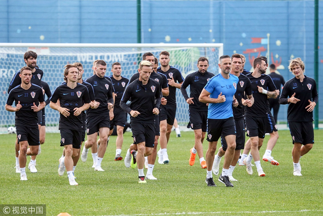 Players from the Croatian national football team attend a training session ahead of the FIFA 2018 World Cup in Russia at their training base Roshchino Arena in Roshchino, Leningrad Region, on June 11, 2018. (Photo: Alexander Demianchuk/TASS/VCG) figcaption >