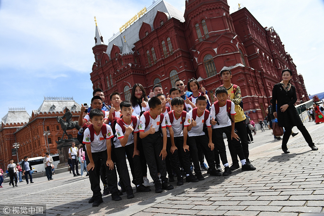 Chinese ball boys arrived in Moscow, Russia, ahead of the 2018 FIFA World Cup on June 13, 2018. They will take to the pitch with the Russian national team during the opening match of the 2018 FIFA World Cup. (Photos: VCG)