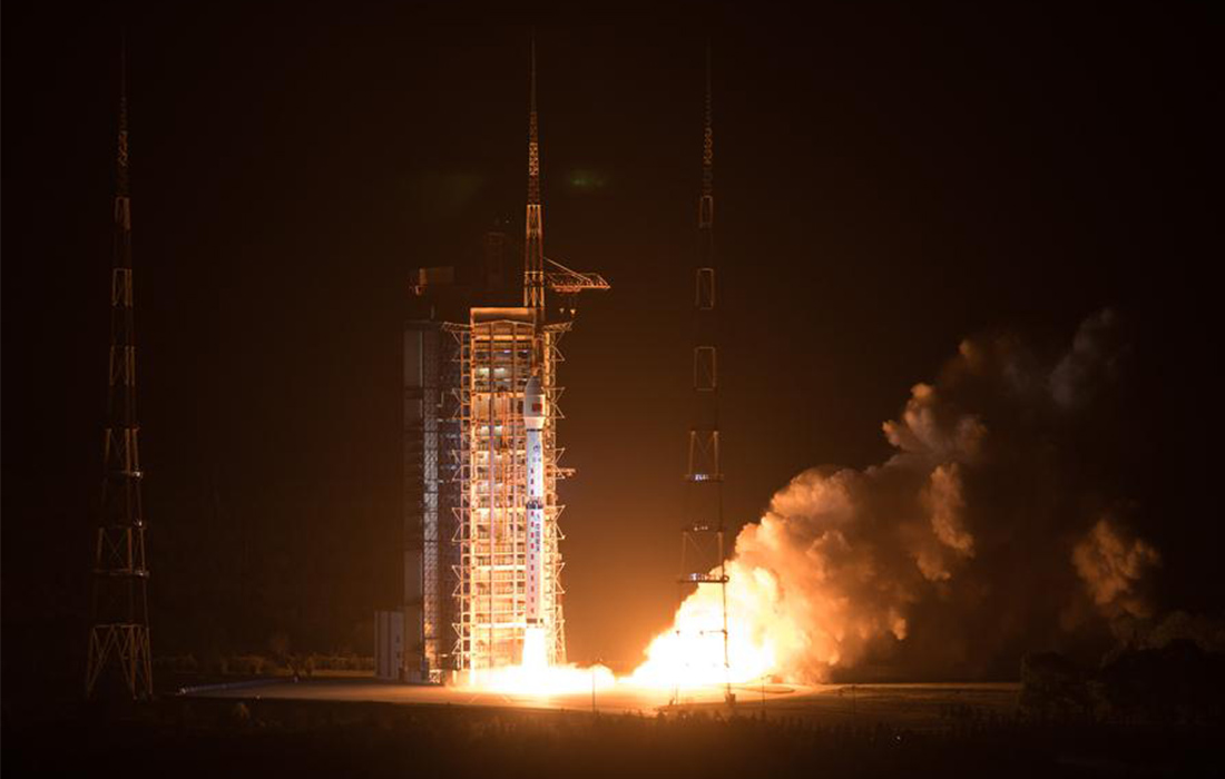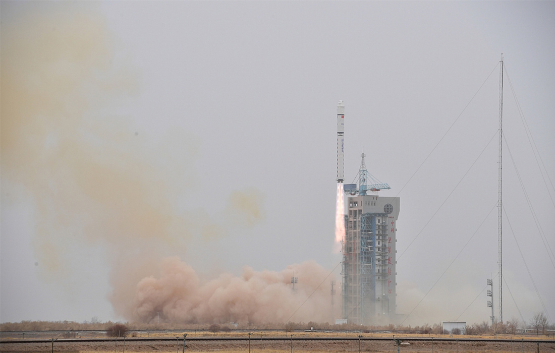 China’s first seismo-electromagnetic satellite, known as Zhangheng-1, successfully launches and enters a sun-synchronous orbit from the Jiuquan Satellite Launch Center, in Northwest China's Gobi Desert, on February 2, 2018. Photo: Xinhua figcaption >