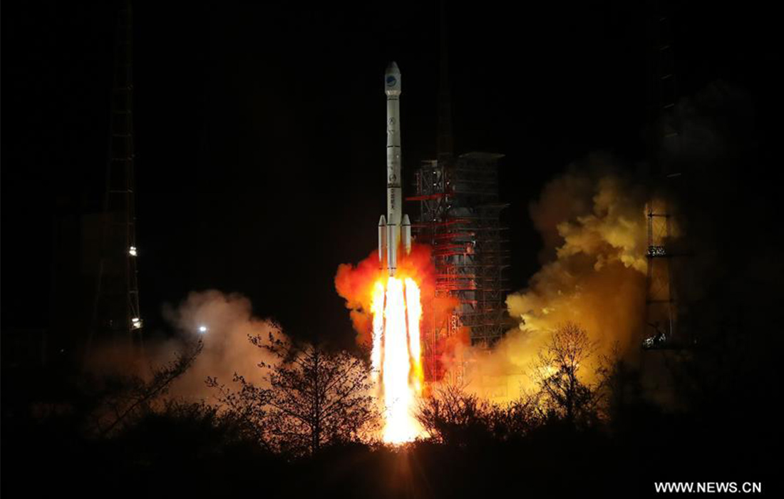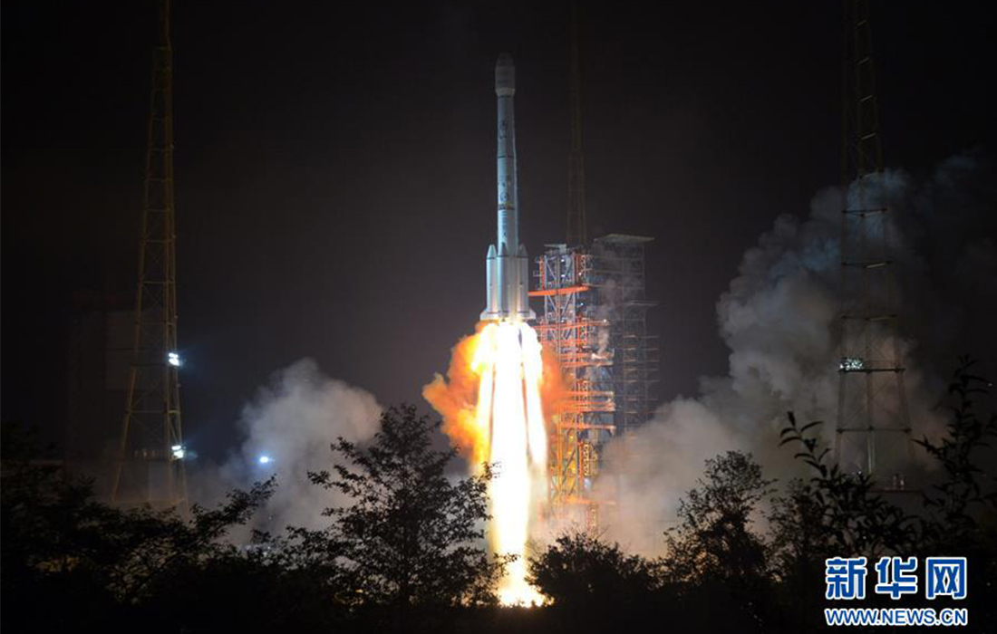 Queqiao, a relay satellite for the Chang'e-4 lunar probe and is also known as the magpie bridge, was launched successfully on the Long March-4C carrier rocket from the Xichang Satellite Launch Center, Southwest China's Sichuan Province, on May 21, 2018. Photo: VCG figcaption >
