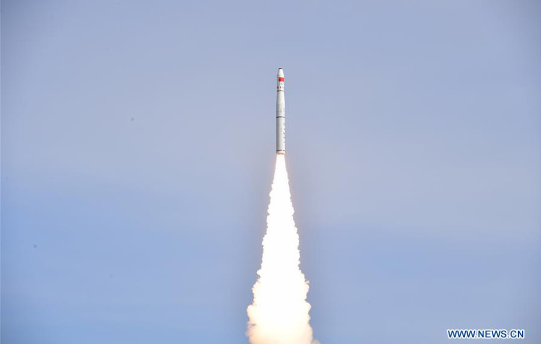 Two high-resolution optical remote sensing satellites, Jilin-1 Video 07 and 08 successfully blasted off to its preset orbit via a Long March-11 carrier rocket, from the Jiuquan Satellite Launch Center, Northwest China's Gobi Desert, on January 19, 2018. Photo: Xinhua figcaption >