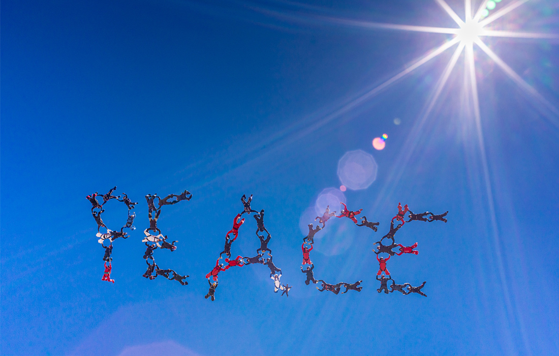 48 skydivers form the word ‘PEACE' over California