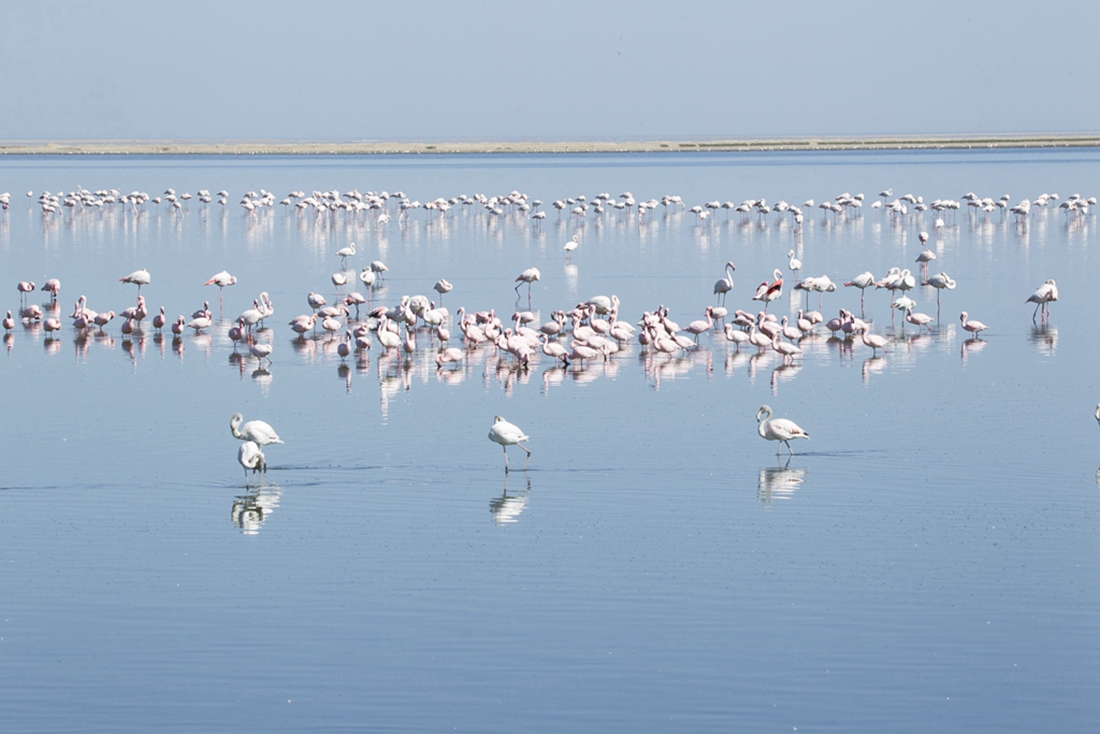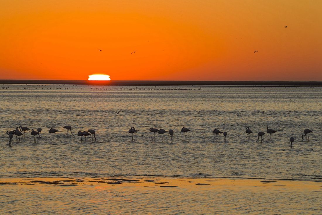Chinese photographer Zhu Jianqiang captured flamingos eating, flying and resting in a lake near Walvis Bay in Namibia when he traveled there for a visit in June 2018. (Photos: Courtesy of Zhu Jianqiang)