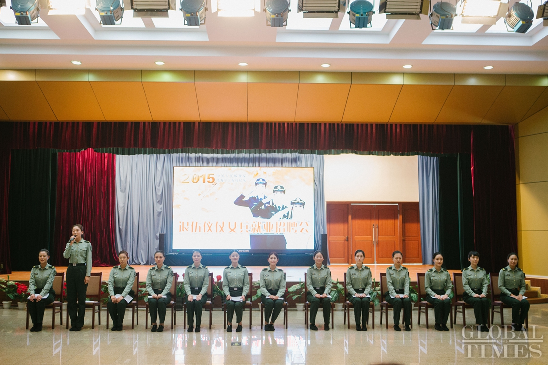 A job fair was held for 13 female veterans of the People's Liberation Army (PLA) Honor Guard in Beijing on September 17. More than ten enterprises participated in the job fair. They signed long-term agreements with the Honor Guard, promising to provide easy access to jobs and training. The 13 soldiers participated in the military parade on September 3 and also in overseas military parades. Photos: Li Hao/GT