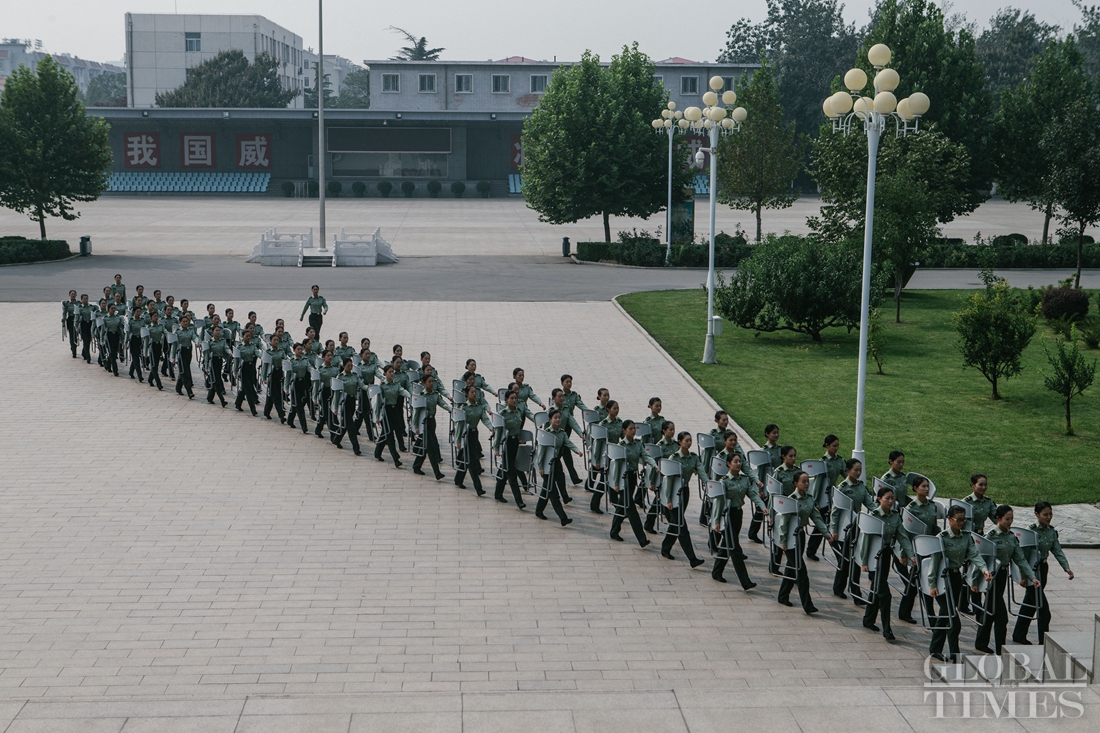 Female soldiers march to the job fair at the camp of the People's Liberation Army (PLA) Honor Guard on September 17.