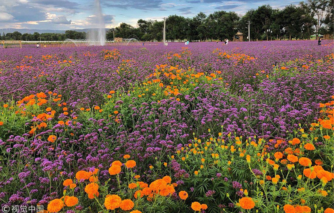 Covering an area of about 133,333 square meters, Verbena officinalis blooms in Gangou Village, Guyuan, Northwest China’s Ningxia Hui Autonomous Region, on August 13, 2018.