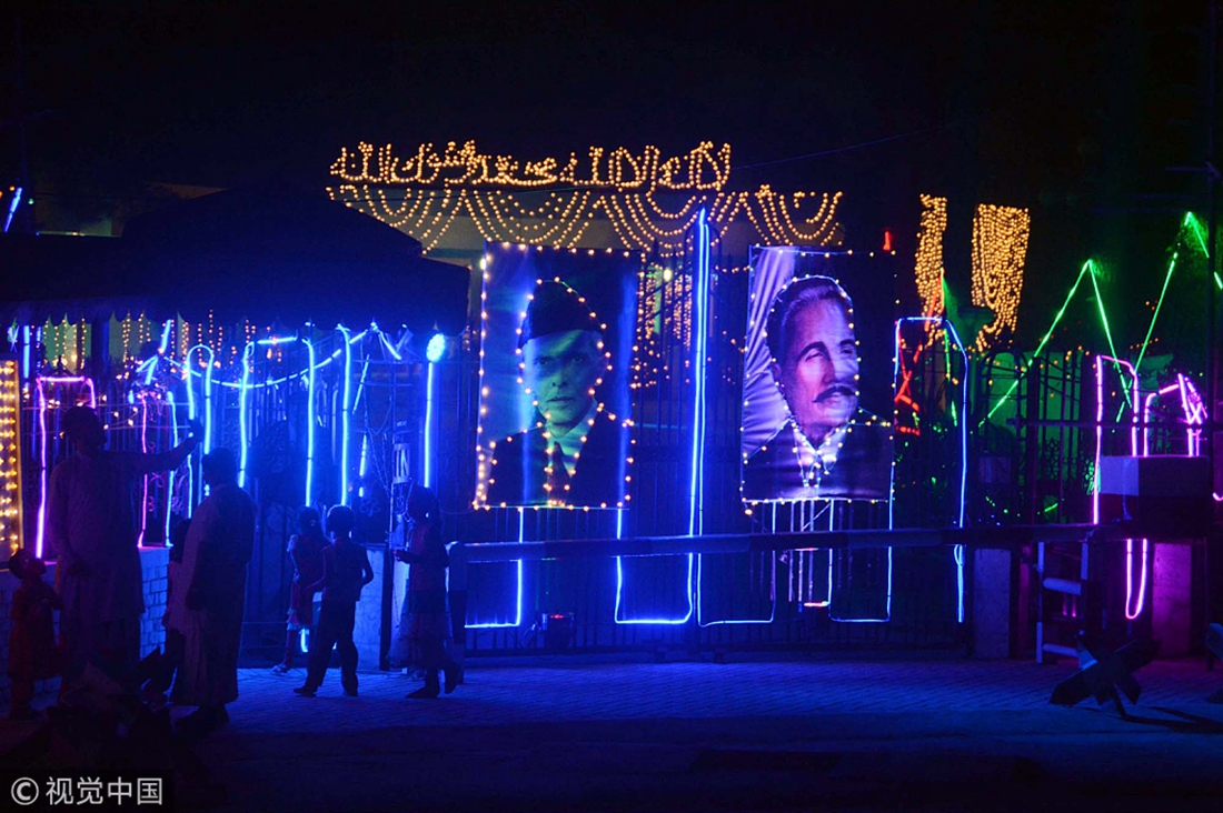 Buildings decorated with colorful lights lit up the night on August 13, 2018, to celebrate Pakistan’s 71st Independence Day on August 14. (Photos: VCG)