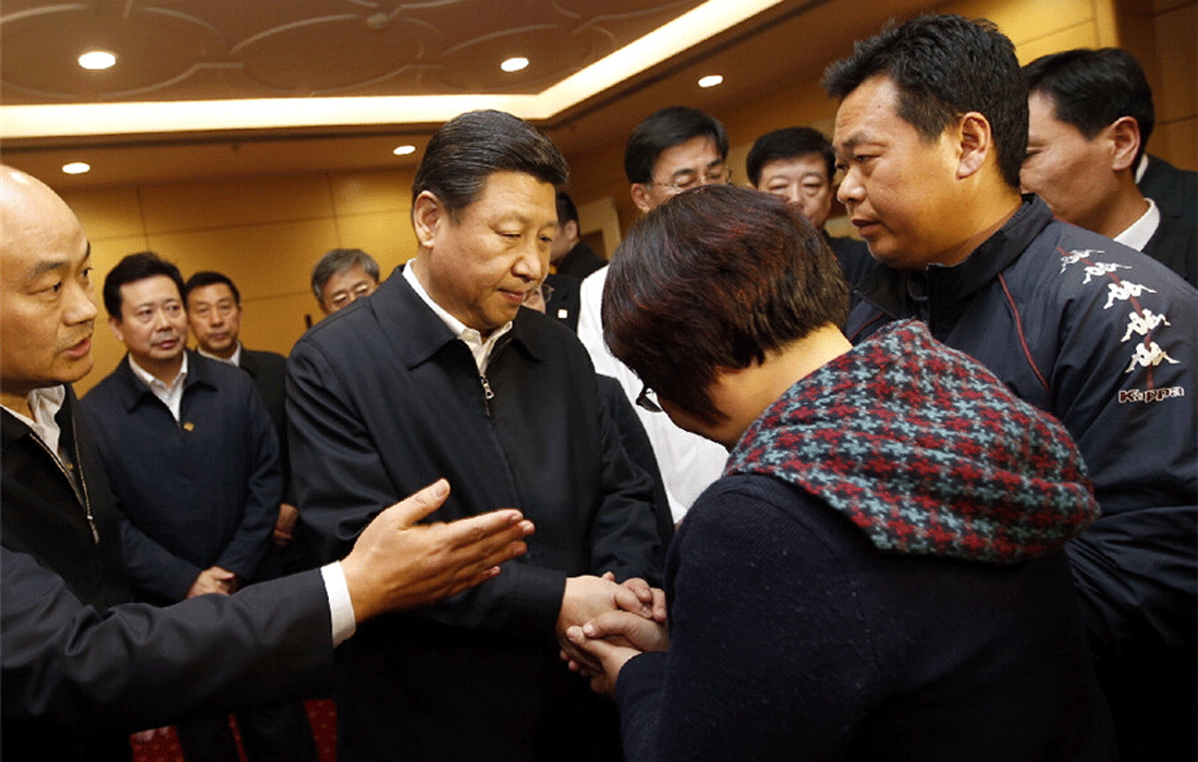 President Xi expresses his condolences to a bereaved family after a deadly oil pipeline explosion in Qingdao, Shandong Province, on November 24, 2015. figcaption >