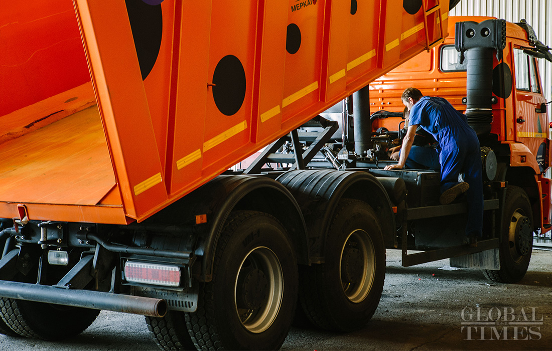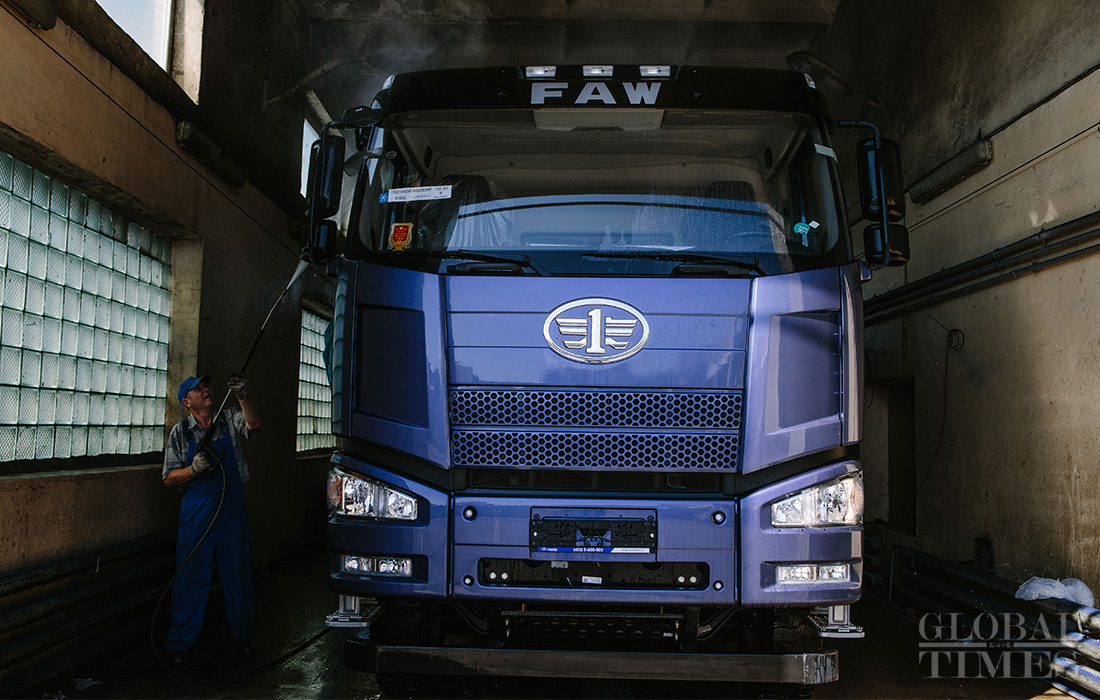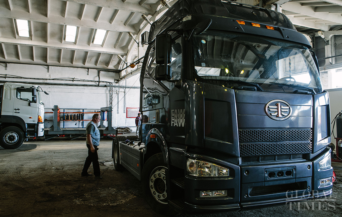 The company hired 32 Russian workers to assemble auto equipment parts and ship the completed automobiles to other cities in Russia. Photo: Li Hao/GT figcaption >