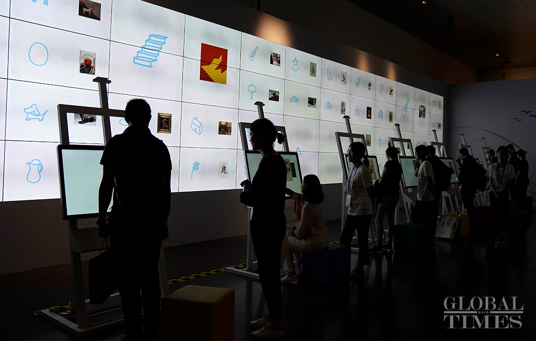 People interact with a Google painting system, which matches world-renowned paintings with people’s sketches. Photo: Yang Hui/GT figcaption >