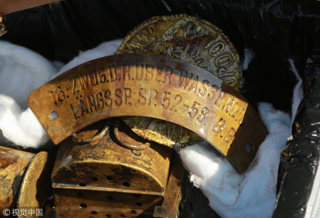 German writing is seen on some of the relics recovered from the Yellow Sea near Dalian, NE China’s Liaoning Province, on September 25, 2018. Photo: VCG figcaption >