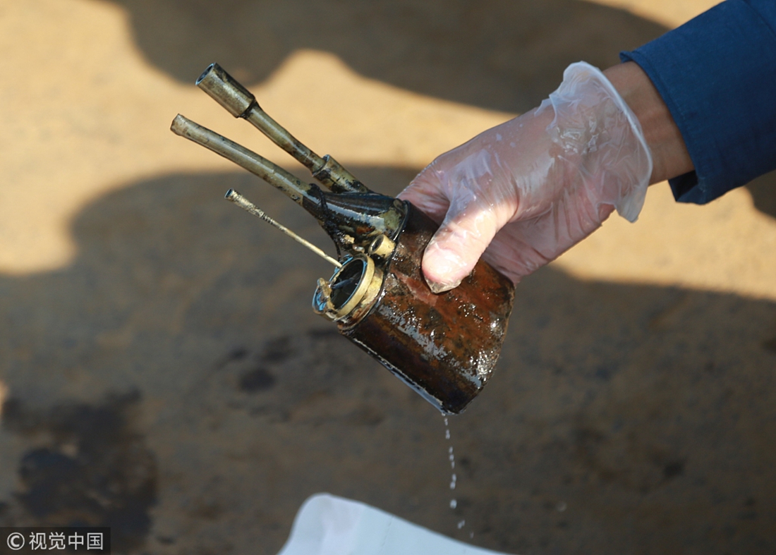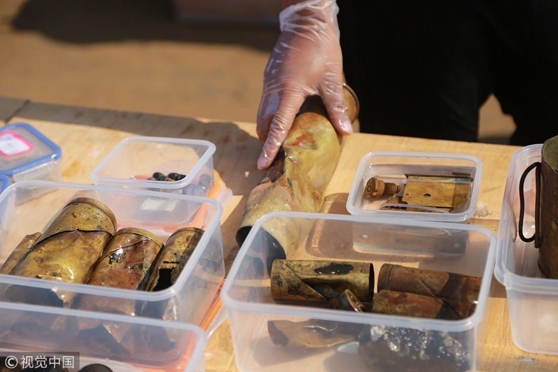 Over 500 relics made of iron, glass, porcelain, leather and other materials were found by Chinese archaeologists at a shipwreck in the northern part of the Yellow Sea near Dalian, NE China’s Liaoning Province, on September 25, 2018. According to the National Cultural Heritage Administration, the shipwreck is the warship Jingyuan that was sunk by the Japanese Navy during the Sino-Japanese War (1894-1895). The study of these relics will open new avenues for research into China’s modern history. (Photos: VCG)