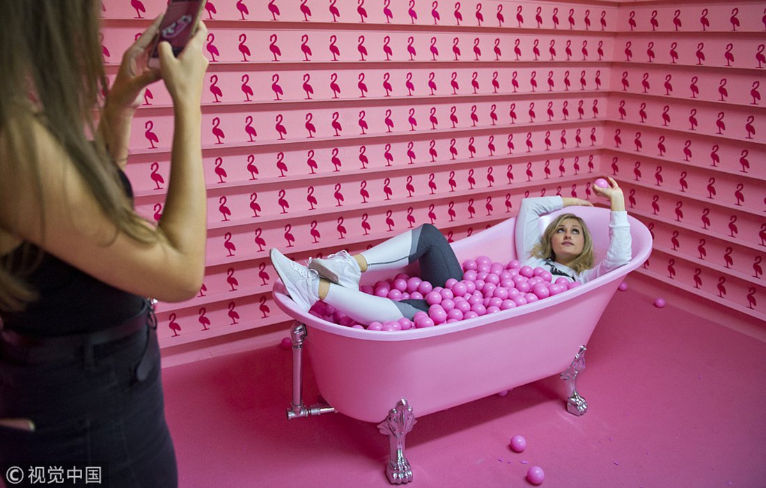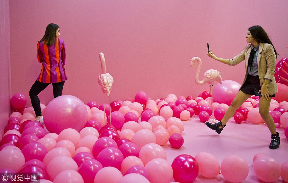 The pop-up museum is located in the halls of a former printing press in Cologne, Germany and includes 20 installations. Girls have crushes on the place that offer visitors vibrant colors and graphic backgrounds to shoot selfies for social media. (Photos: VCG)