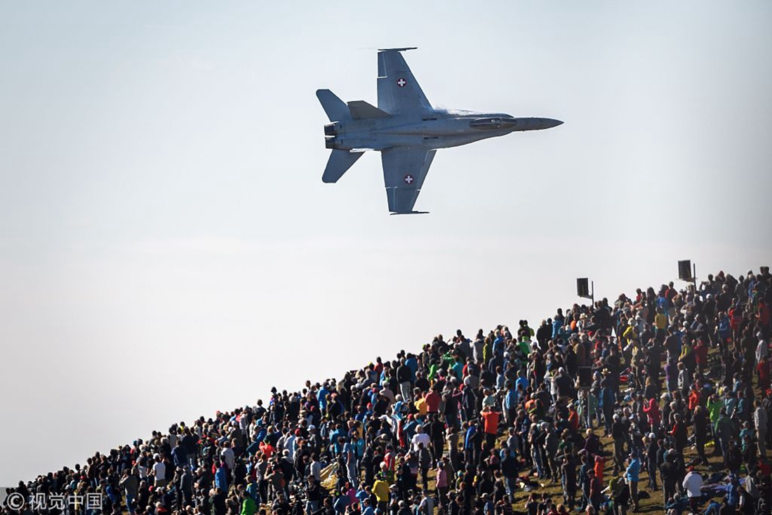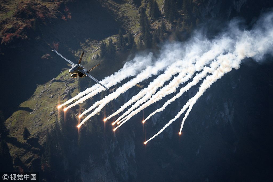 The Swiss Air Force held their annual live fire shooting drill over Axalp near Brienz, Switzerland, in the Bernese Alps on October 10, 2018. At an altitude of 2,200 meters above sea level, spectators observed the unique aviation display performed at the highest air force firing range in Europe. (Photos: VCG)