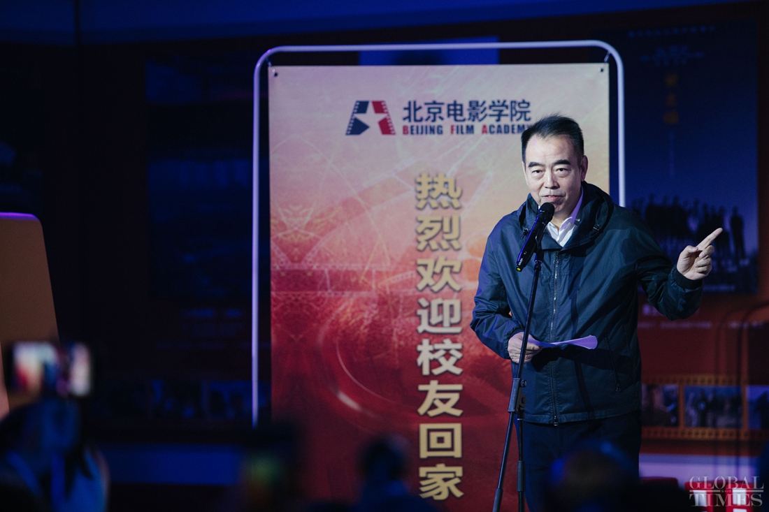 Chinese director Chen Kaige gives a speech during the event at the Beijing Film Academy. Photo: Li Hao/GT figcaption >