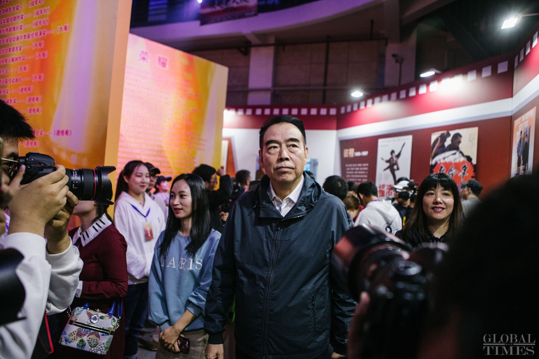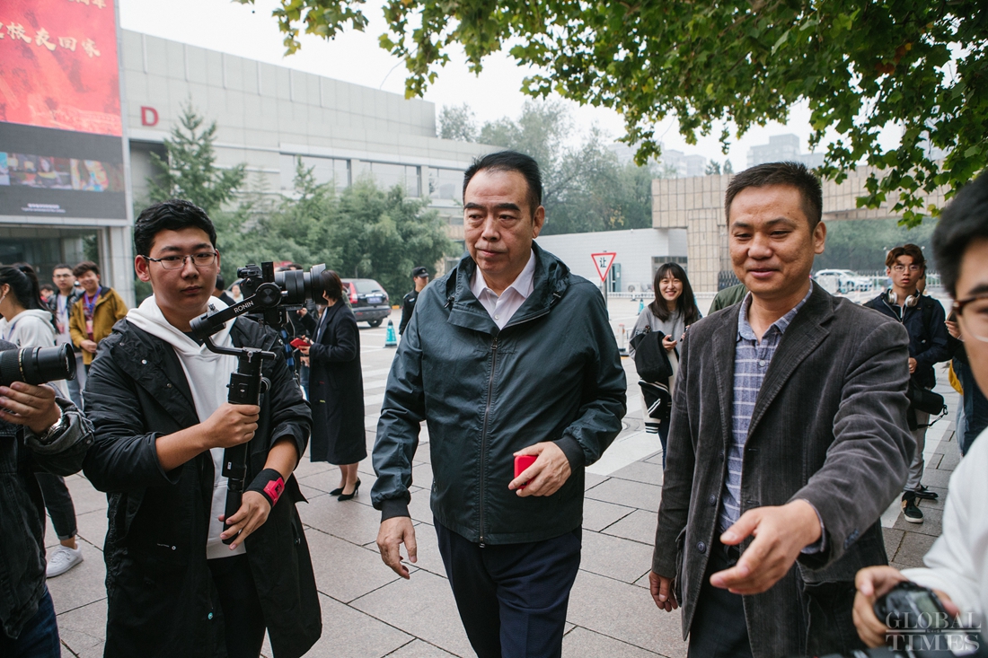 Chinese director Chen Kaige (center) arrives at the Beijing Film Academy to attend the event on October 15, 2018. Photo: Li Hao/GT figcaption >