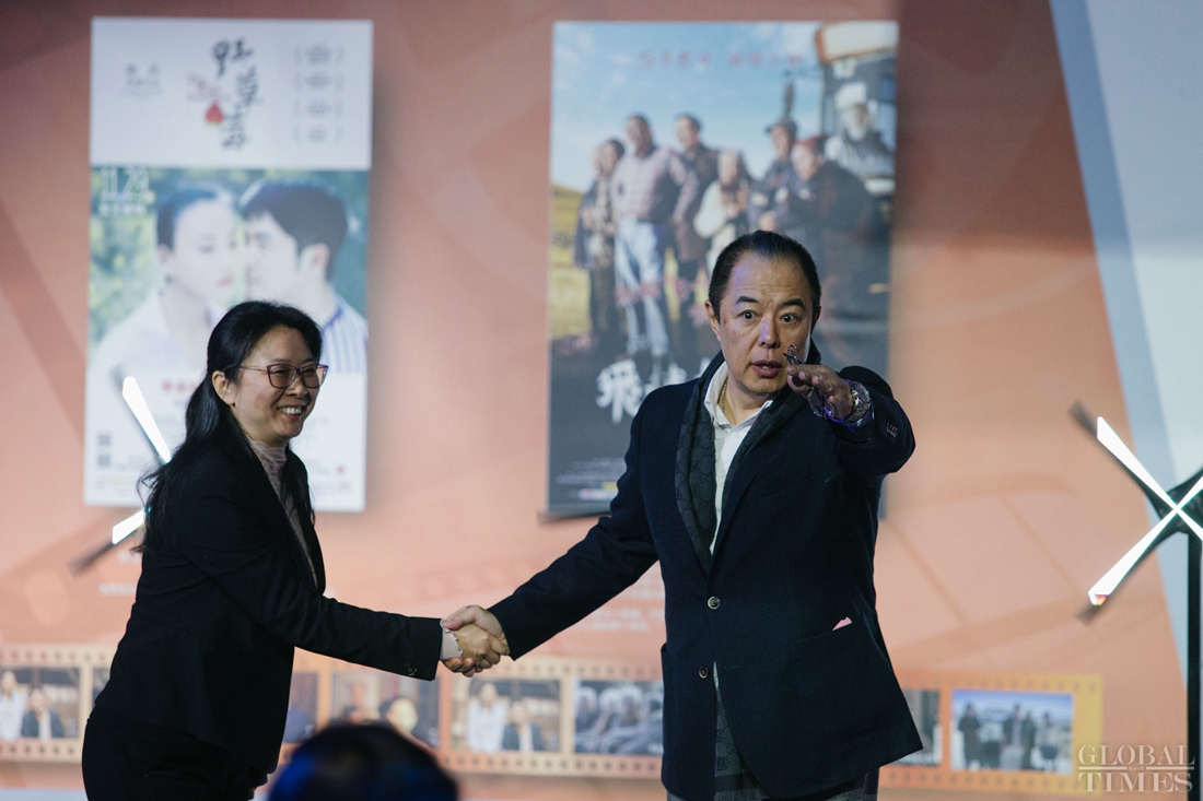 Chinese movie and TV star Zhang Tielin (right) attends the event at the Beijing Film Academy on October 15, 2018. Photo: Li Hao/GT figcaption >