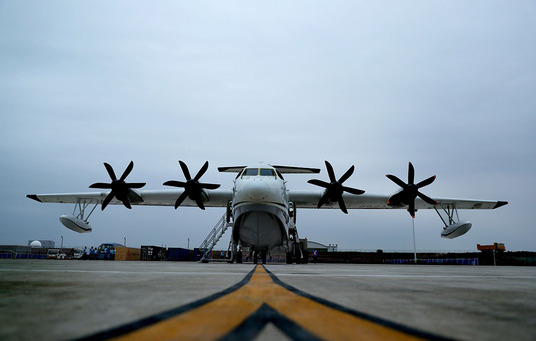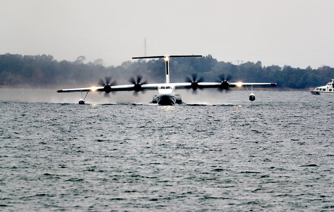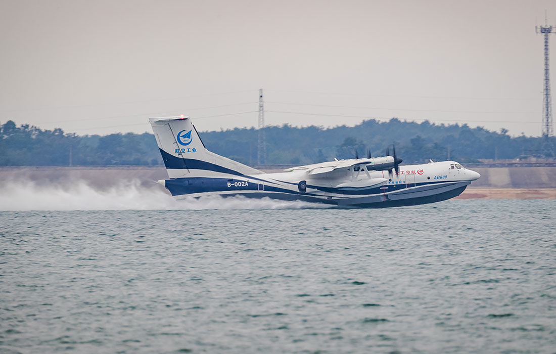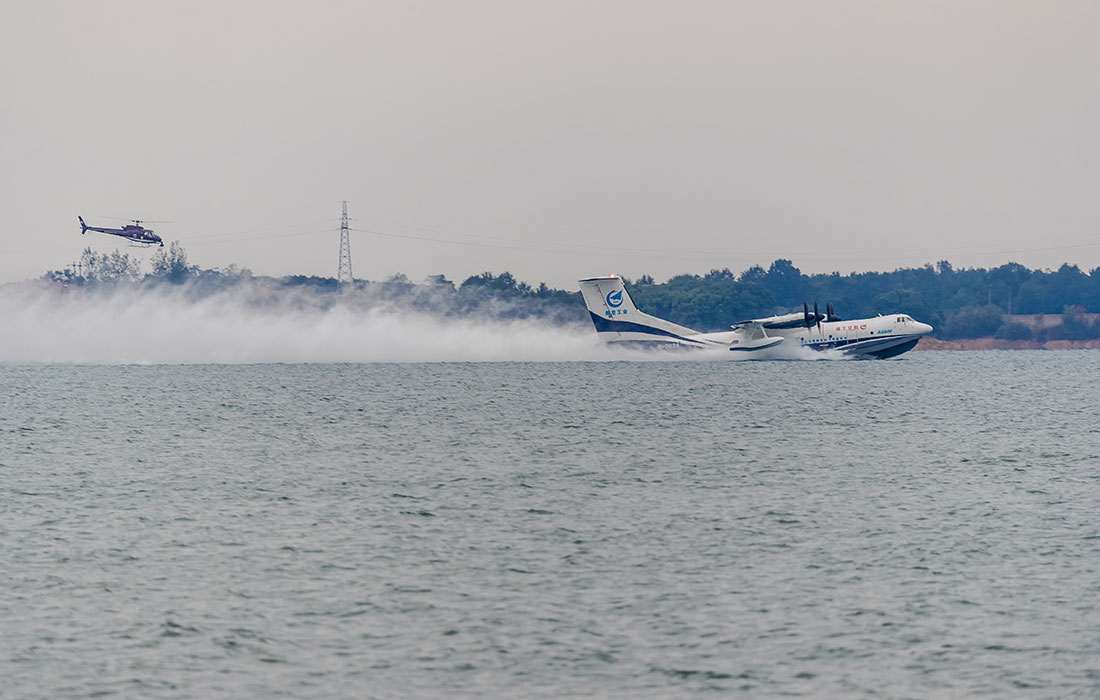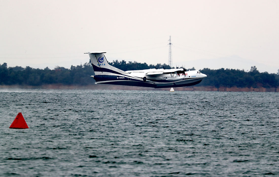 Amphibious aircraft AG600 makes first water-based takeoff