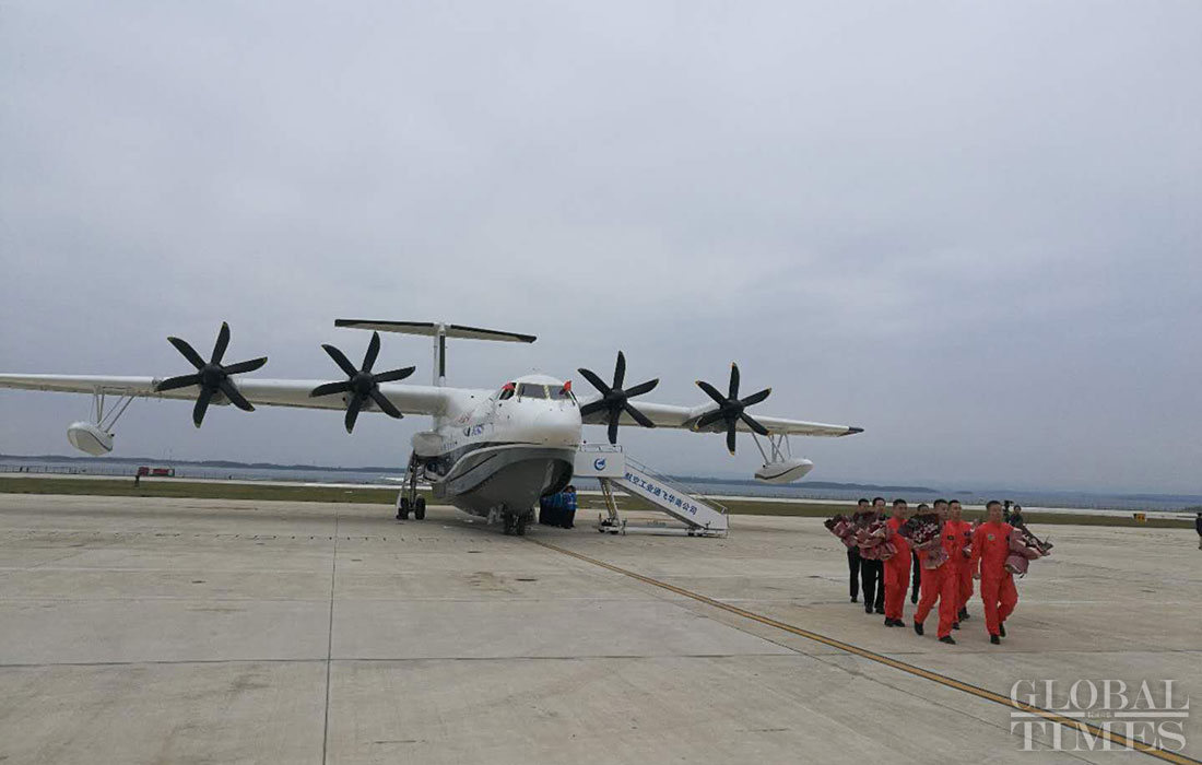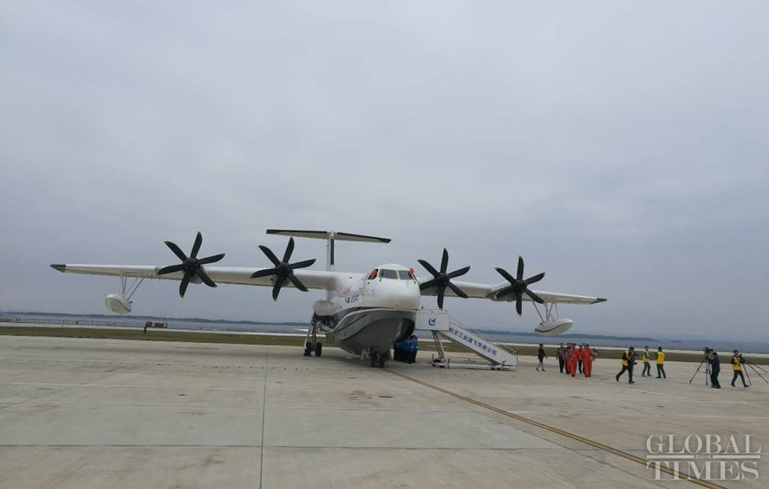 Amphibious aircraft AG600 successfully made its first water-based takeoff on Saturday morning in Central China’s Hubei Province. The aircraft was indigenously designed and built by the Aviation Industry Corporation of China. Photos: Courtesy of Aviation Industry Corporation of China, Ma Jun/GT