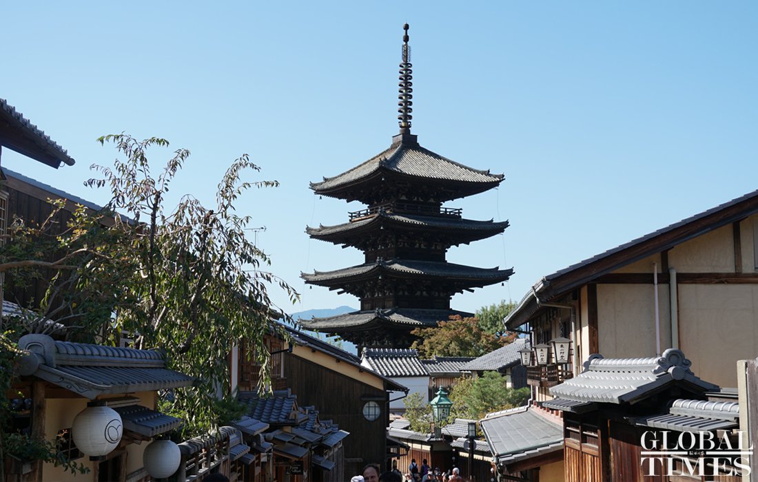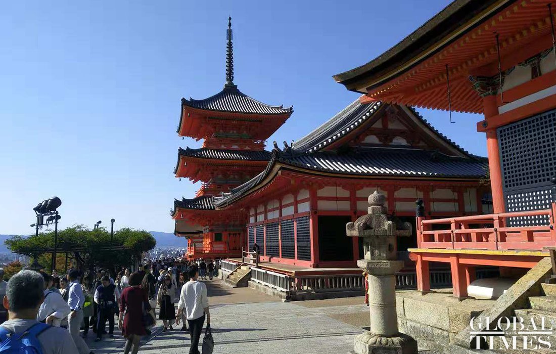 Tourists visit the three-layered Pagoda in Kiyomizu-dera Temple in Kyoto on October 24. Photo: Deng Zijun/GT figcaption >