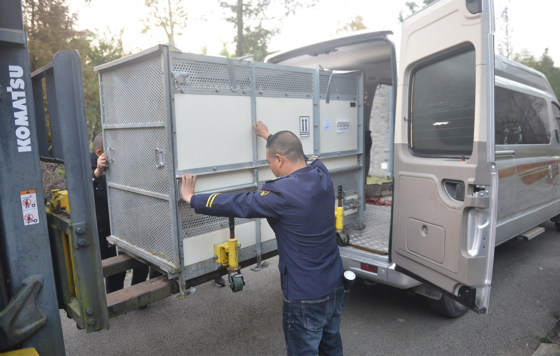 Chinese giant panda Gaogao returned to the China Conservation and Research Center of Giant Pandas in Southwest China’s Sichuan Province, from the San Diego Zoo, US, on Thursday morning. At the age of 28, Gaogao is father to five giant panda cubs that were born in the US. It was rescued from the wild in 1992 and has lived in the San Diego Zoo since 2003.