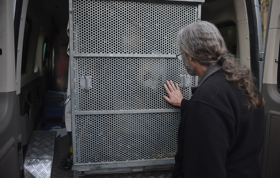 The US breeder bids farewell to Gaogao. Photo: Courtesy of China Conservation and Research Center of Giant Pandas figcaption >