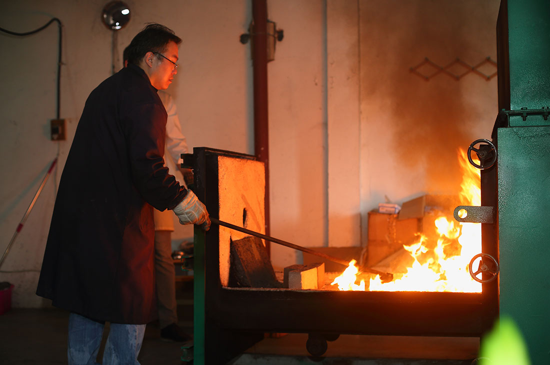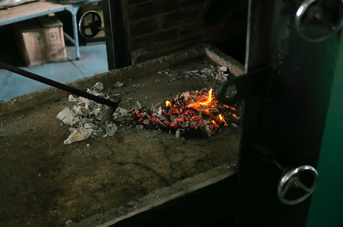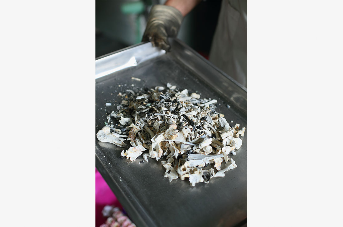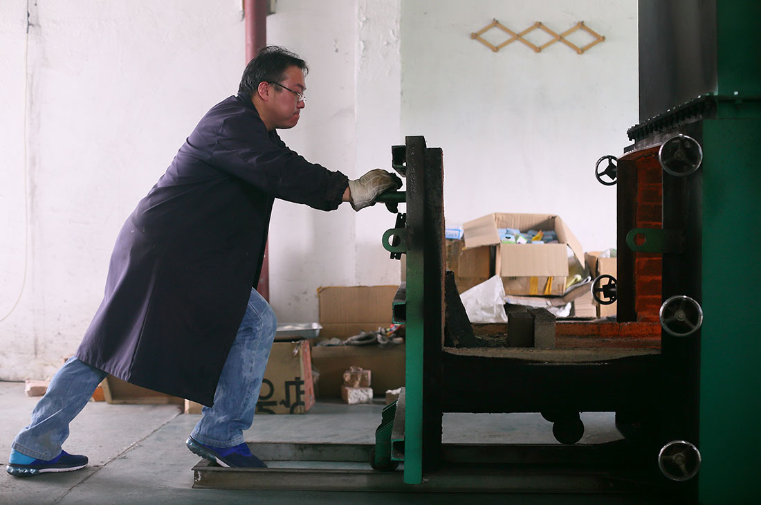 An employee at a pet crematorium in Shanghai puts the body of a pet into an incinerator on October 22, 2015. Pet cremation has become more popular in recent years as a burial alternative that owners find both more respectful and hygienic. Photos: CFP
