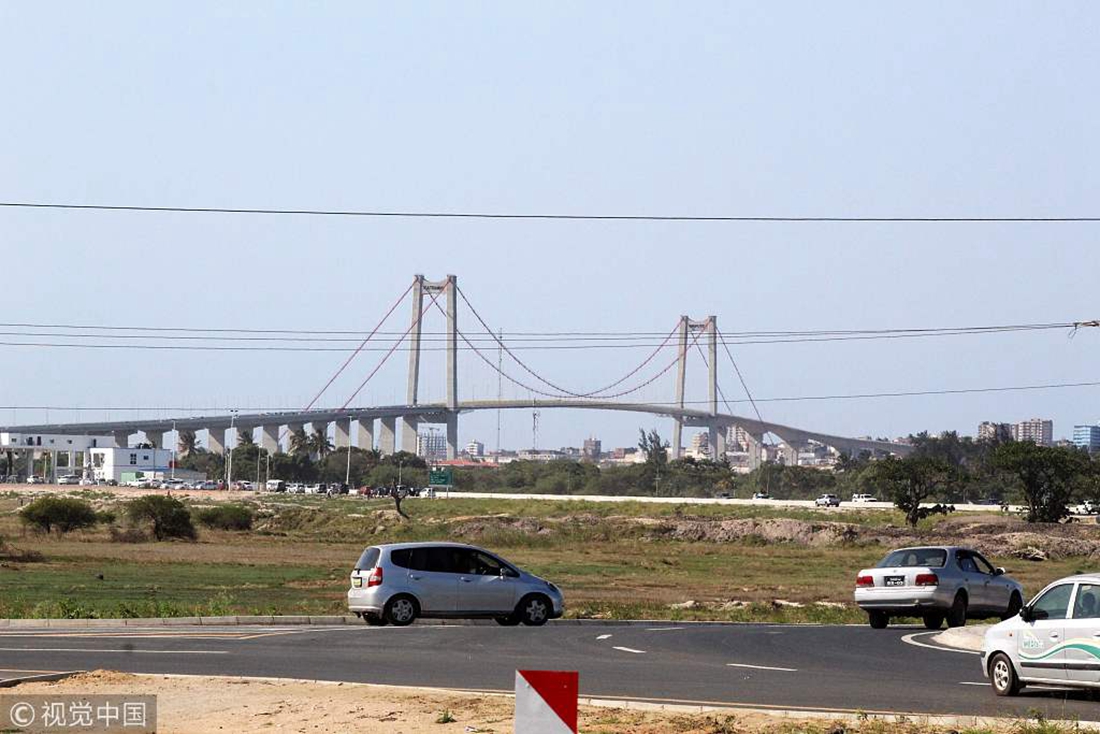 A general view of the newly inaugurated Maputo-Katembe Bridge (background) was photographed on November 10, 2018 in Maputo, Mozambique. Photo: Roberto Matchissa/VCG figcaption >
