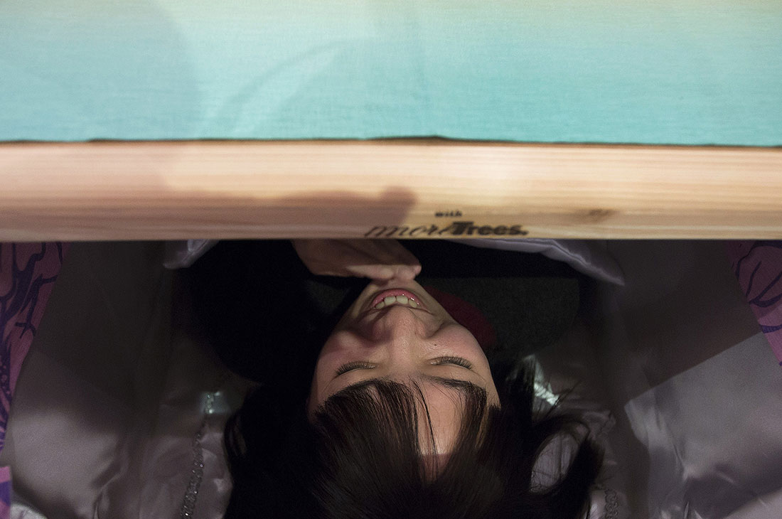 A woman closes the coffin lid during the Coffin Experience in Tokyo, Japan recently. figcaption >