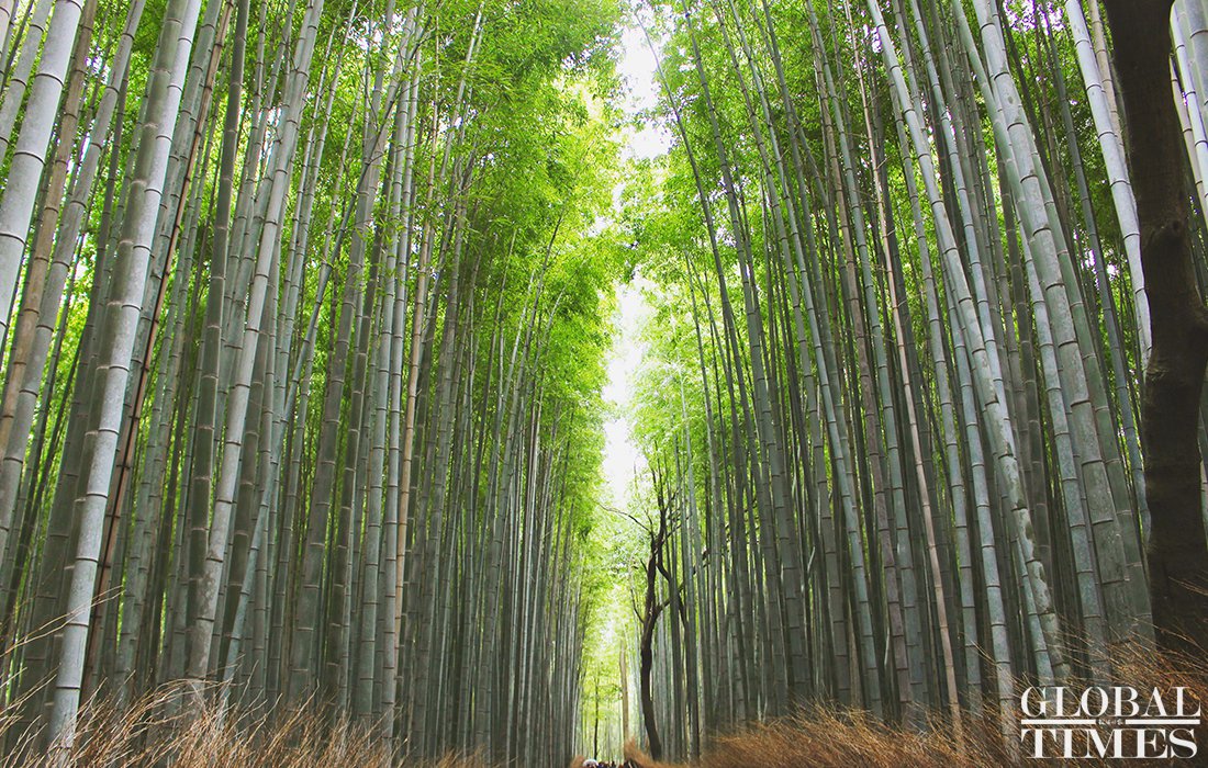 A photo taken on November 22 shows a path through a breathtaking bamboo forest in Arashiyama, Kyoto, Japan. Photo: Courtesy of Zhang Yue figcaption >