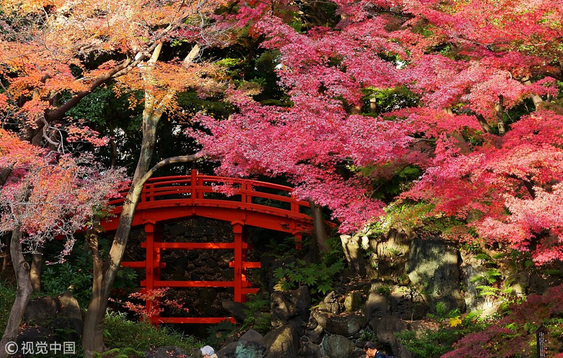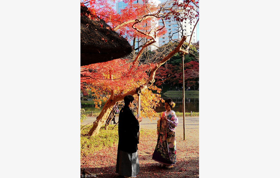 Some visitors to the Koishikawa Korakuen Garden in Tokyo, Japan, dressed up in traditional Japanese kimonos to take pictures with the late autumn scenery in early December. The gorgeous reds and yellows of the leaves created a wondrous background. With a rich history and subtle influences from China, the garden maintains an exquisite aesthetic throughout the four seasons. (Photos: VCG)