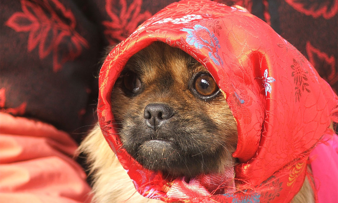 A dog wears a kerchief in Mudan district of Heze in East China’s Shandong Province on December 18, 2009.