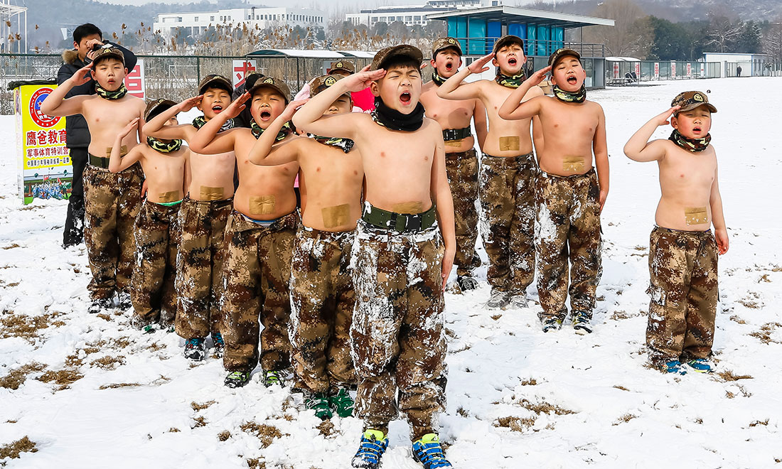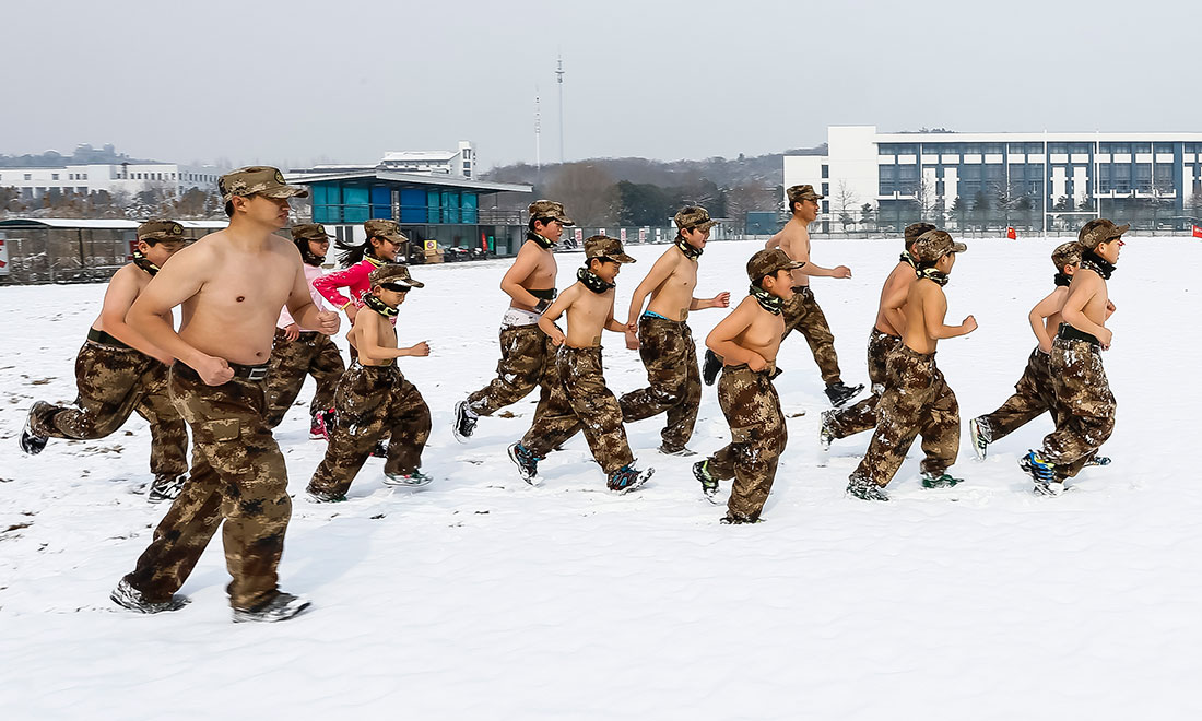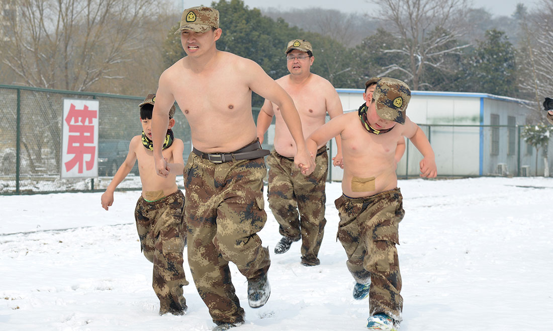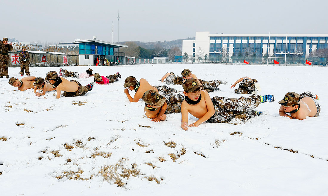 Right after the heavy snow fall on February 1, a group of children, aging from 3 to 12 who are half-naked and wore only trousers, performed survivor-style exercise under below zero temperatures at the snow-covered playground of the Jiangsu Institute of Physical Education and Sports. Their parents sent them to the special training, aiming to make them learn how to survive in harsh conditions. Photos: CFP