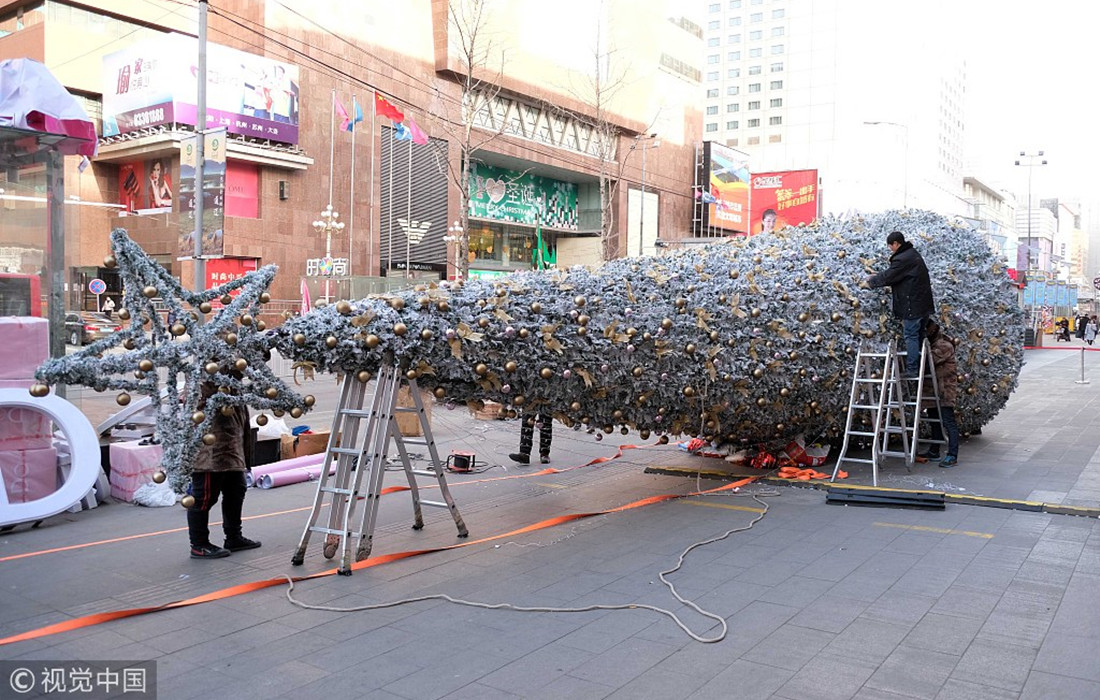As Christmas nears, Christmas trees are erected to celebrate one of the most popular Western festivals among Chinese people. (Photos: VCG)