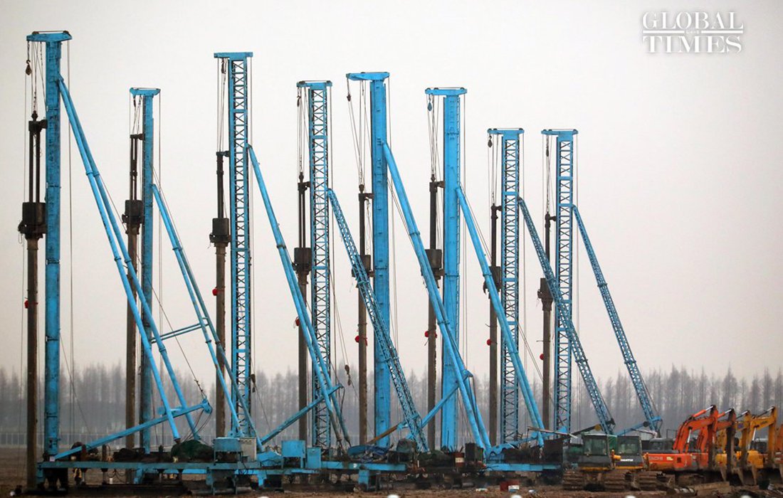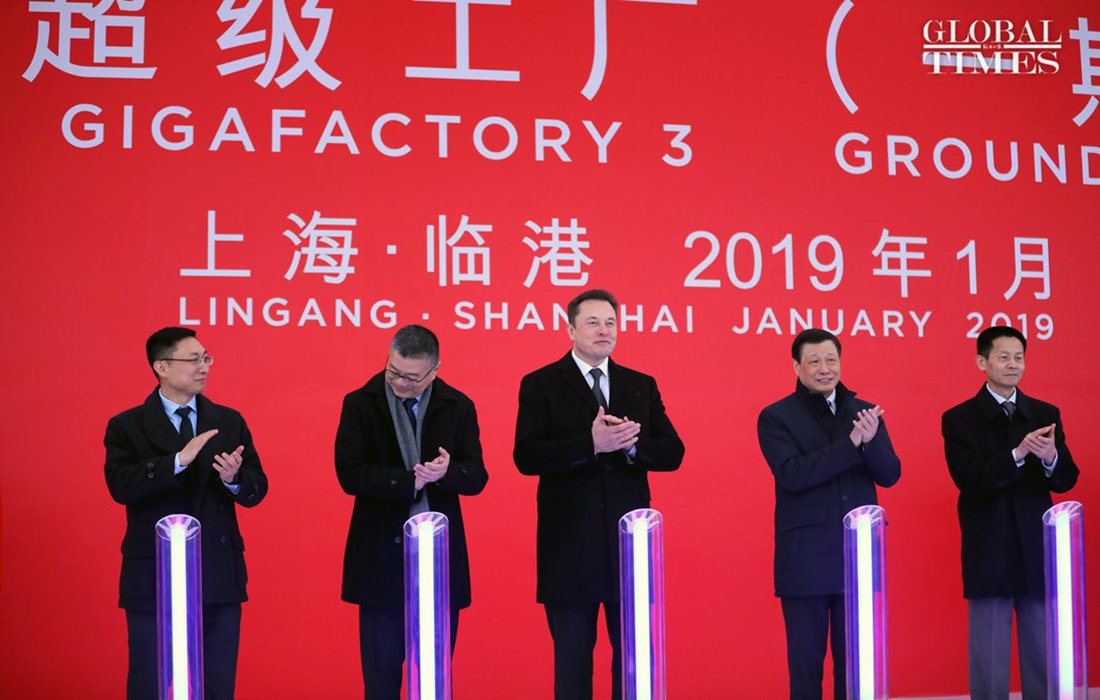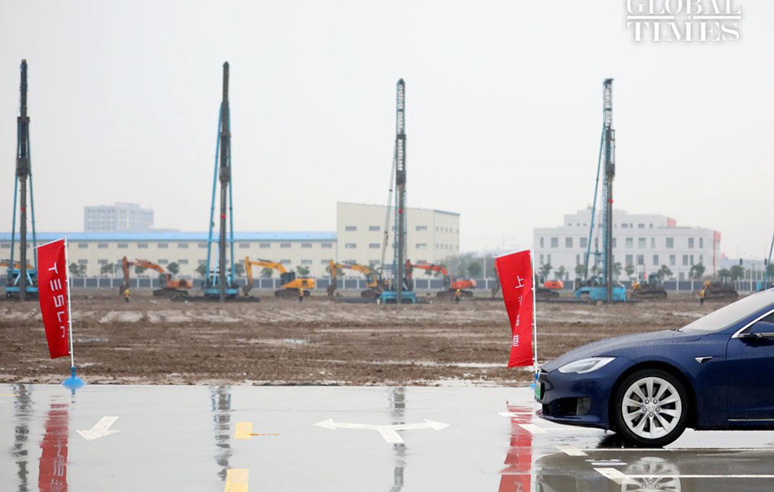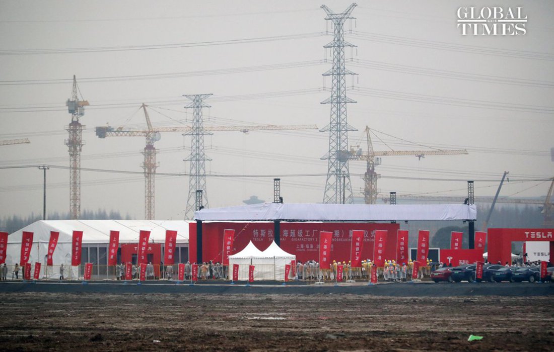 US electric car giant Tesla laid the foundation in Shanghai, east China at 3pm on Jan 7. The Tesla Gigafactory is expected to start Model 3 production at year's end, said Elon Musk, chief executive officer. Photos: GT/Yang Hui.