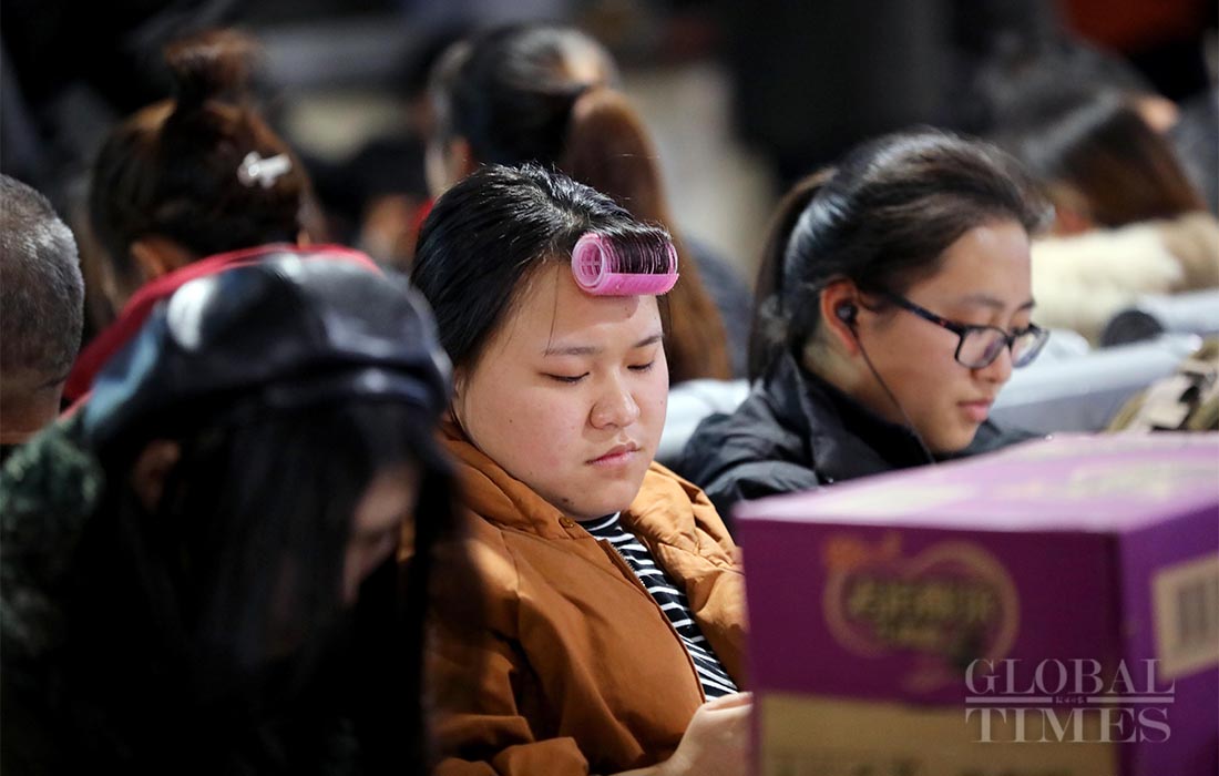 Passengers wait to board the trains at Shanghai railway station Jan 17, 2019. Photo: Yang Hui/GT figcaption >