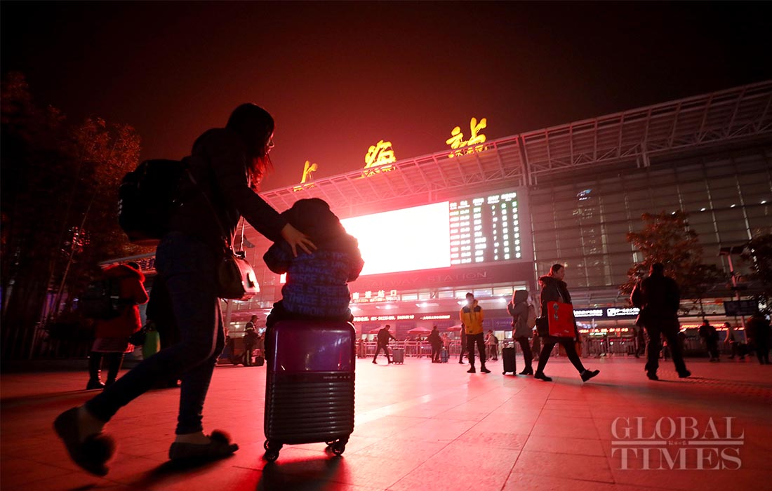 Passengers walk to board their train at the Shanghai Railway Station on January 17, 2019. Photo: Yang Hui/GT figcaption >