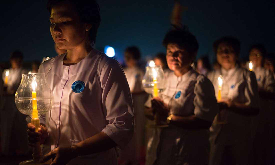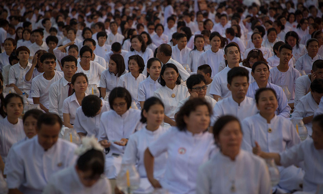 Buddhists join the yearly ceremony at the Wat Phra Dhammakaya on Makha Bucha in Pathum Thani province, north of Bangkok, on February 22, 2016. figcaption >
