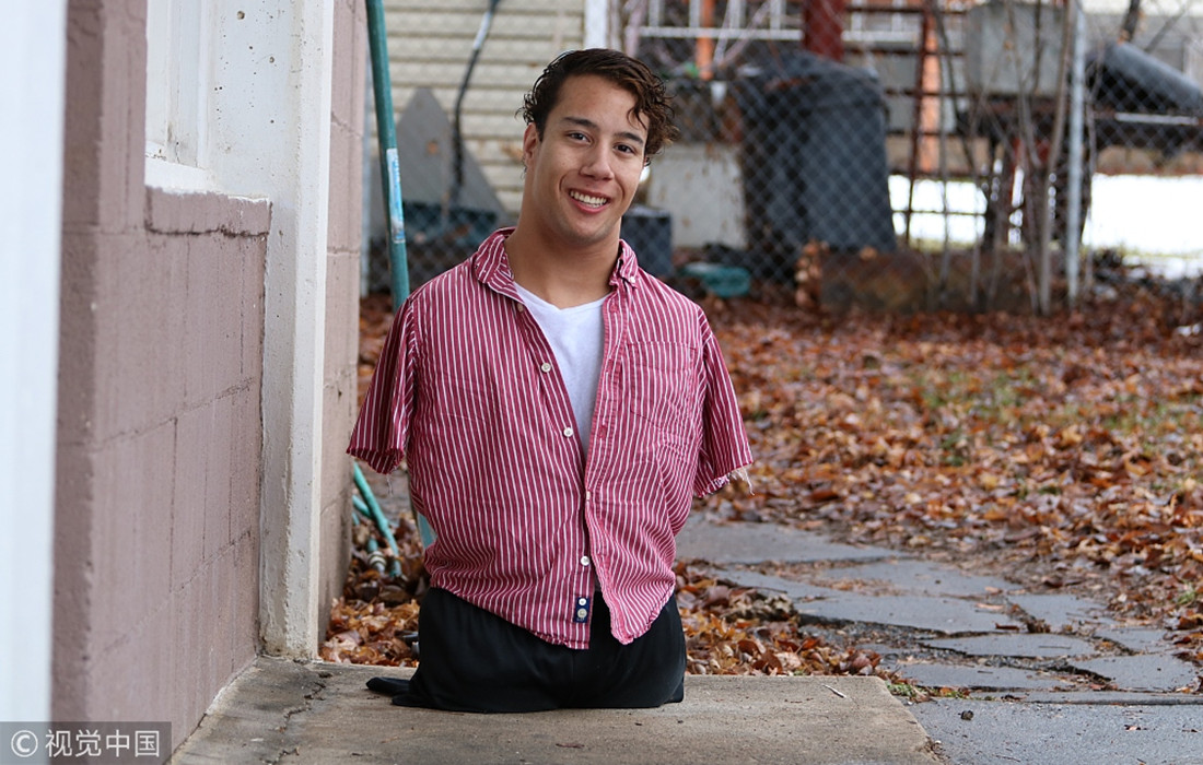 Gabe Adams, 19, was born without arms and legs. He was brought to the United States by his foster parents as a baby, and encouraged him to live without a wheelchair. Later, he tried to make friends by joining dance teams. After graduating from high school, Adams became a motivational speaker, whose life story inspired many. (Photos: VCG)
