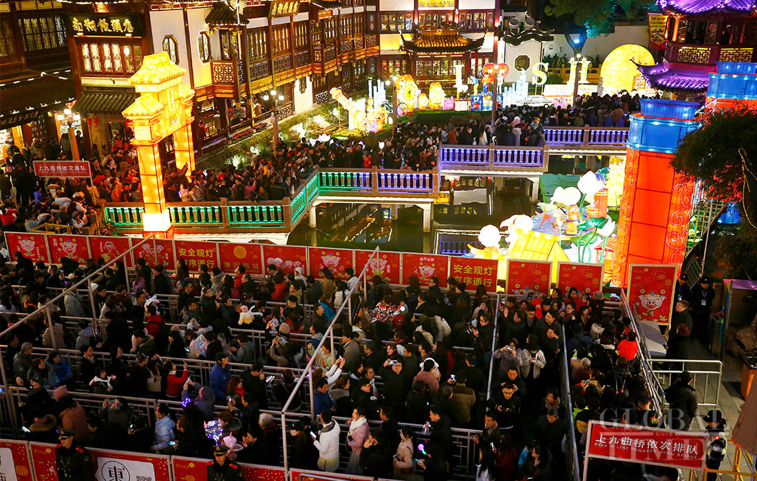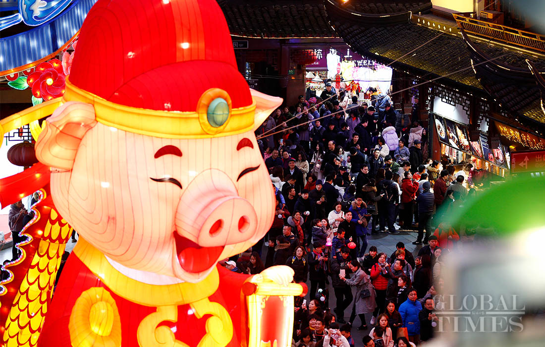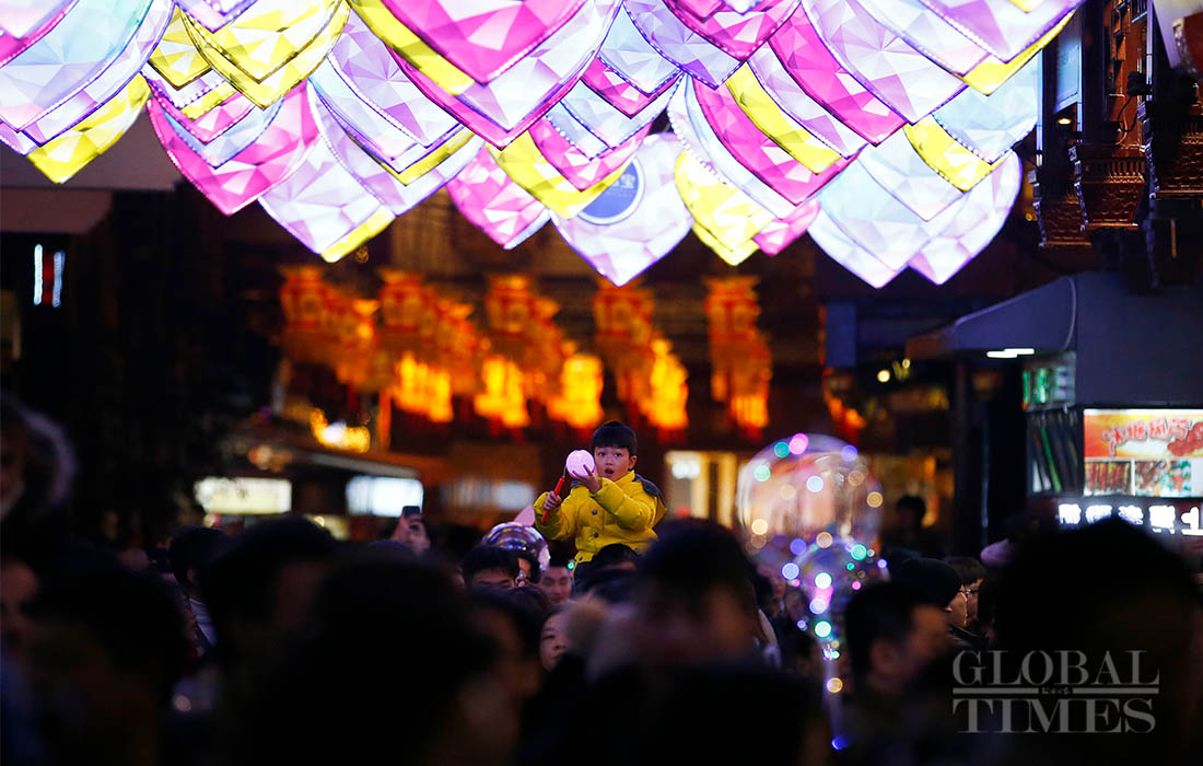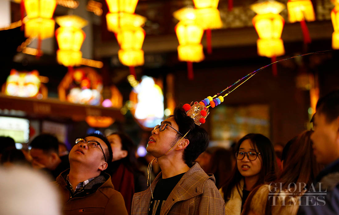 Visitors view fancy lanterns on Tuesday at Yuyuan Garden to celebrate the Lantern Festival in East China's Shanghai. The lantern fair in Yuyuan Garden is a key cultural event in Shanghai during the Spring Festival. Photos: Yang Hui/GT