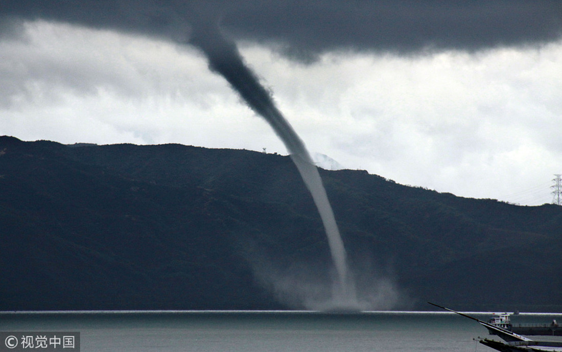 A water spout happens in China’s Shenzhen Bay and lasts for around 17 minutes. Photo: VCG figcaption >