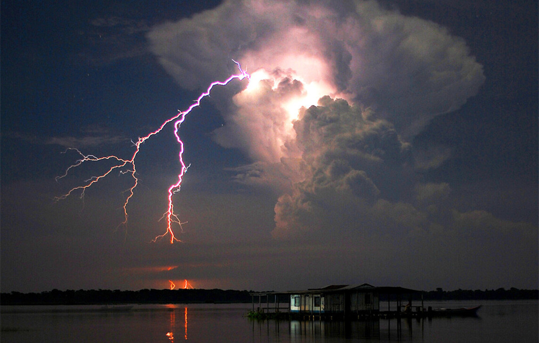 Fork-shaped lighting strikes from the sky of Catatumbo Delta, Venezuela. Photo: VCG figcaption >