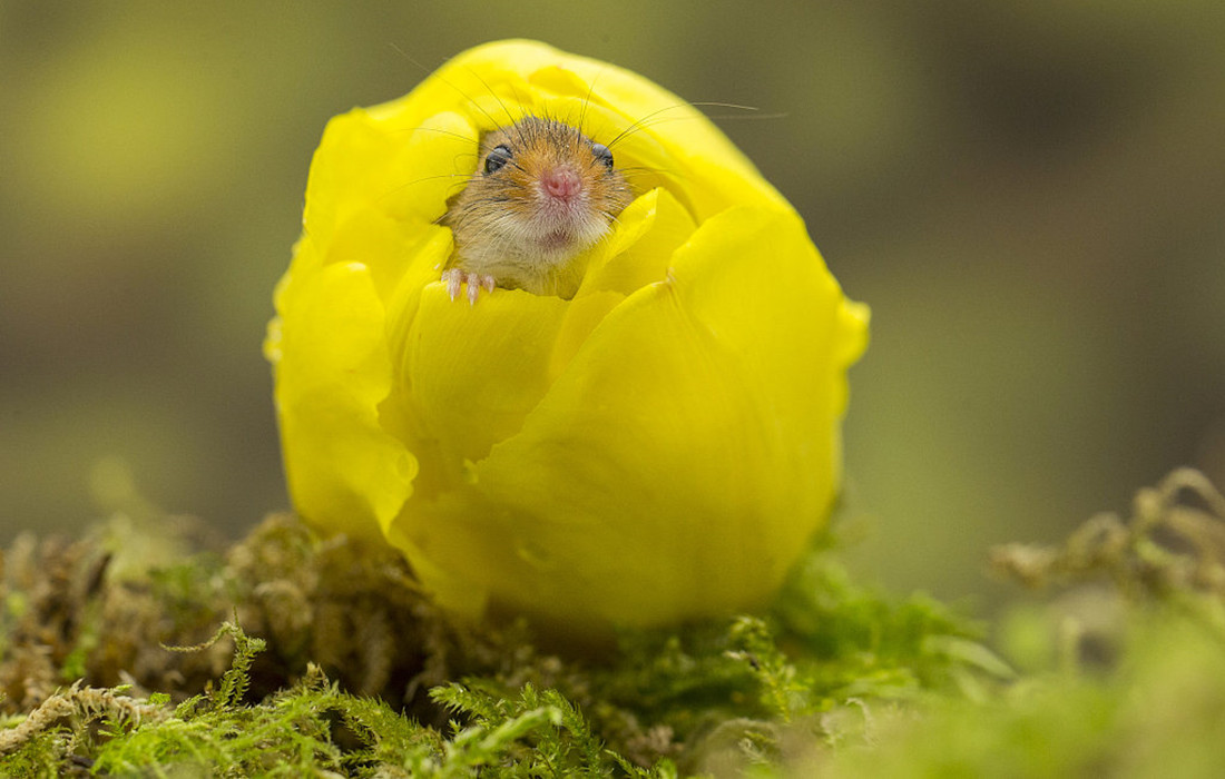 Photos taken by Alex Meek, a 32-year-old photographer, show harvest mice playing inside tulips in Scarborough, North Yorkshire of the UK on May 4, 2019. (Photos: VCG)