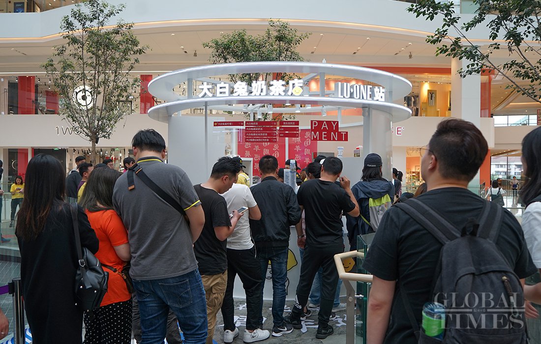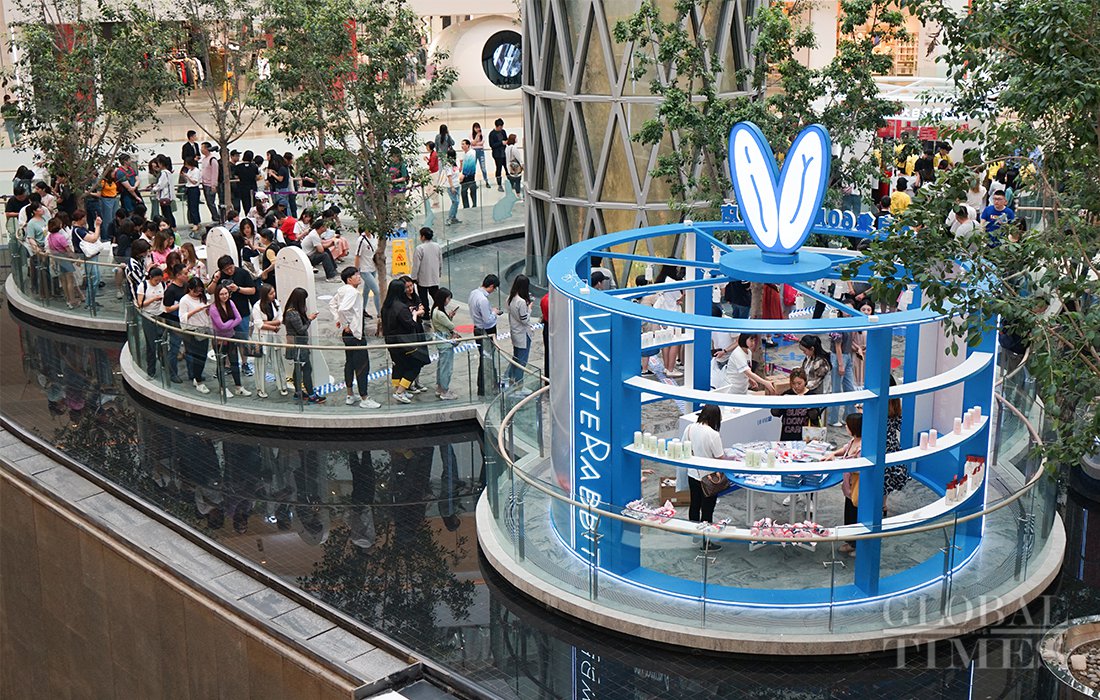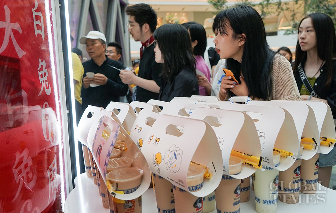 Two pop-up milk tea stores of China’s White Rabbit Creamy Candy opened at LuOne in Shanghai. People swarmed to try the new products of this Chinese iconic brand, which recalled their childhood memories.Photos: Lu Ting/GT