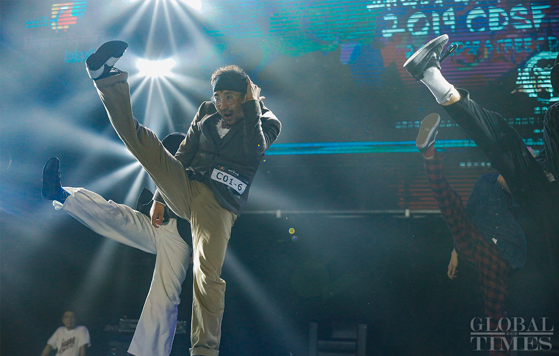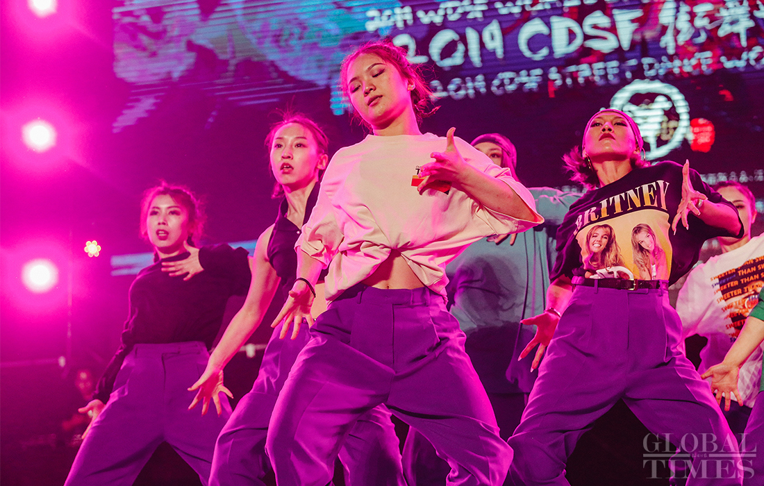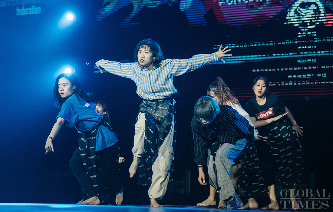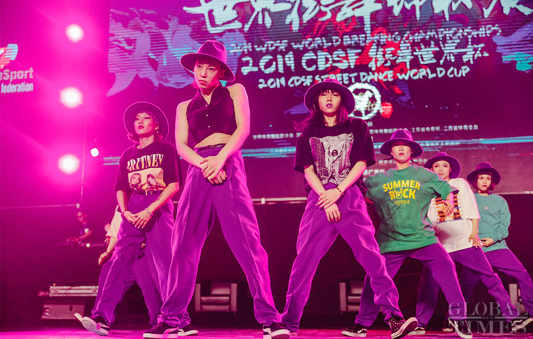 Participants competed and showed off locking and popping skills during the finals of the 2019 CDSF (Chinese DanceSport Federation) Street Dance World Cup on Friday at the Lishui Sports Center in East China's Nanjing. Photos: Li Hao/GT
